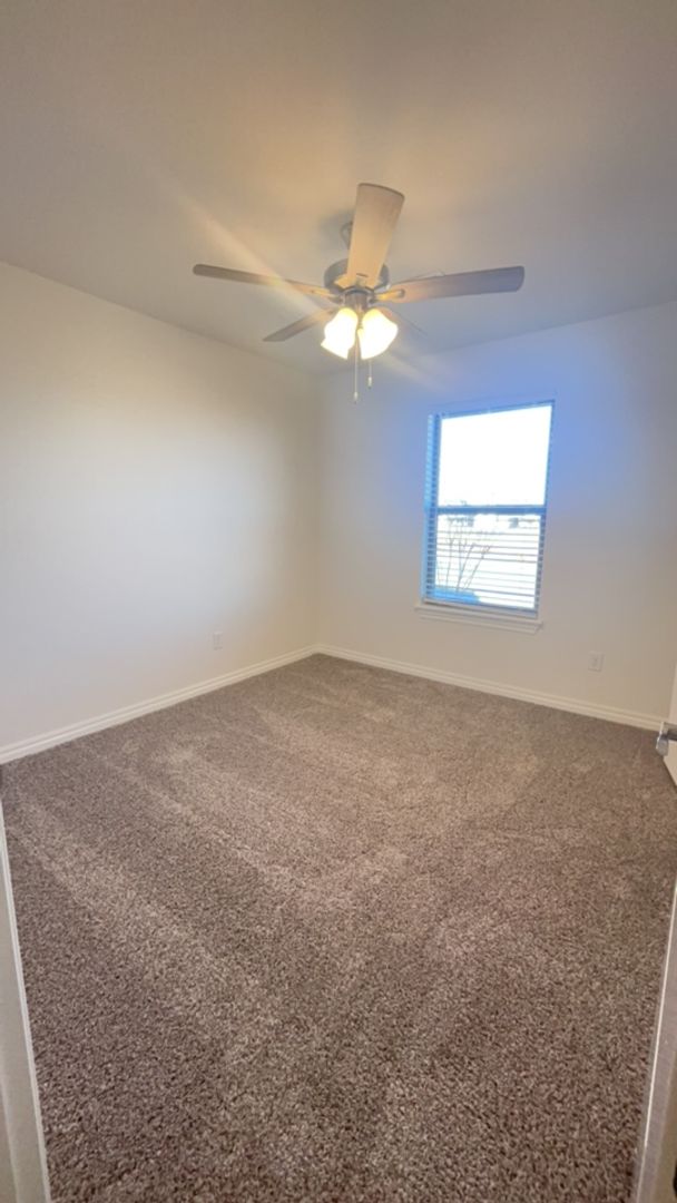 This Bogan floor plan includes 1,510 Sqft of total living space, which includes 1,400 Sqft of indoor living space and 110 Sqft of outdoor living space. There is also a 395 Sqft, two-car garage with a storm shelter installed. This home offers 3 bedrooms, 2 bathrooms, 2 covered patios, an office, and a utility room. The living room welcomes wood-look tile, large windows, a ceiling fan, and Cat6 wiring. The kitchen has 3 CM quartz countertops, stainless-steel appliances, wood-look tile, custom-built cabinets with decorative hardware, and stylish tile backsplash. The primary suite features noteworthy carpet flooring, a ceiling fan, Cat6 wiring, and perfect-sized windows. The upgraded primary bath offers a dual sink vanity with an elegant countertop selection, a tub/shower combo, an elongated water-saving toilet, and a walk-in closet! The outdoor living area is covered and has fully sodded yards with a water saving sprinkler system. Other amenities include a tankless water heater, a fresh air intake ventilation system, R-15 and R-38 insulation, an air filtration system. Pets case by case