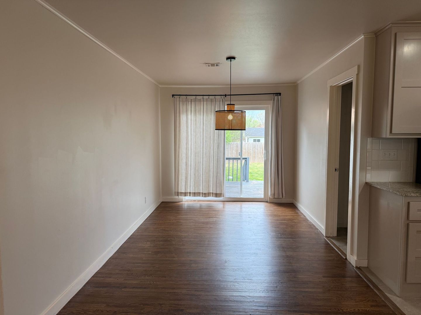 Charming 3-bedroom, 1.5-bath home in Broken Arrow close to Main Street with an open floor plan and hardwood flooring throughout. The large kitchen features granite countertops and flows into living spaces enhanced by ceiling fans in every room. Step outside to a wooden deck and fenced yard for privacy, plus a two-car garage and a large shop for additional storage or workspace. Located in the Broken Arrow schools district, this home combines functional layout and useful amenities for comfortable daily living. Pets case by case.