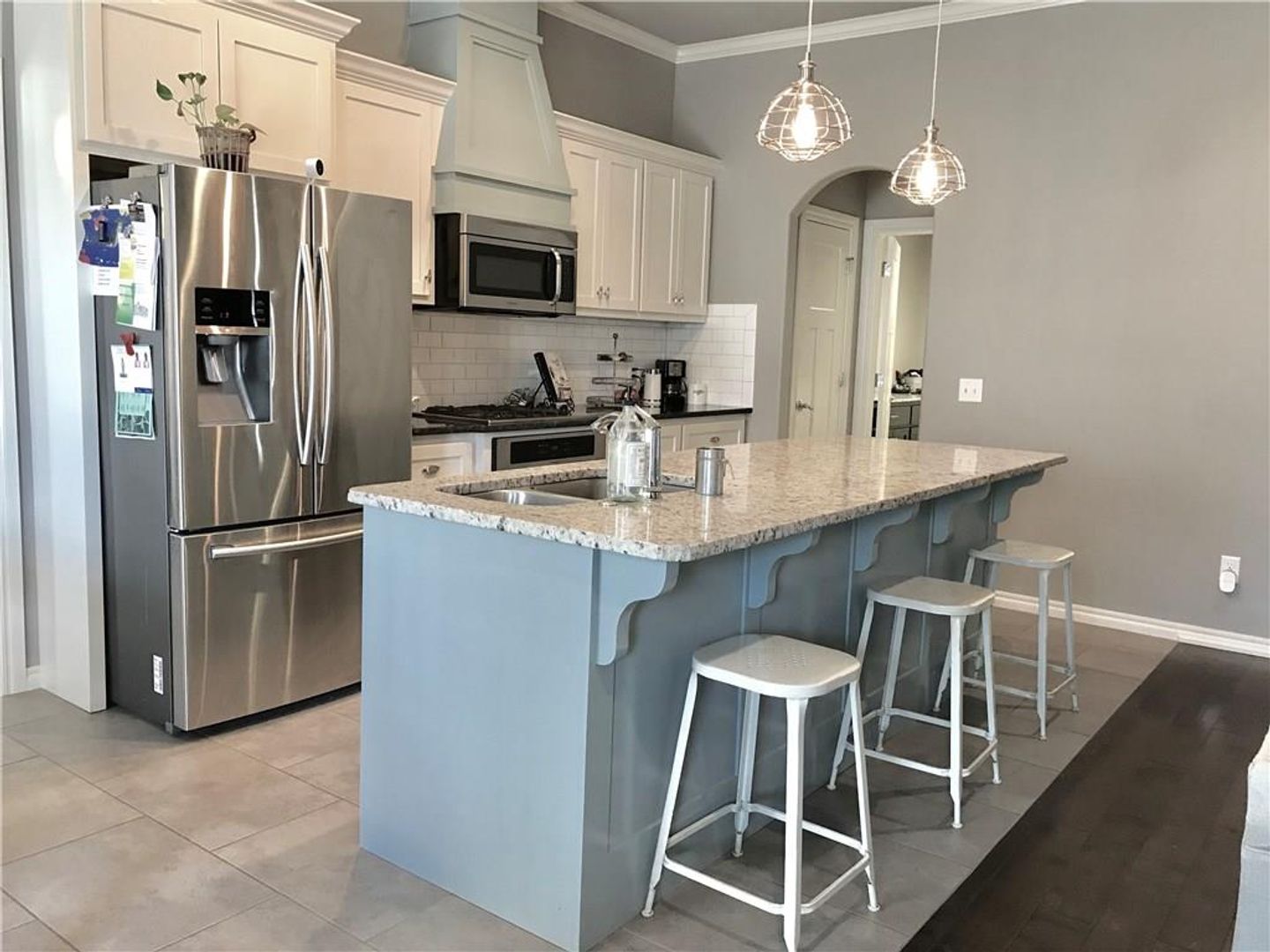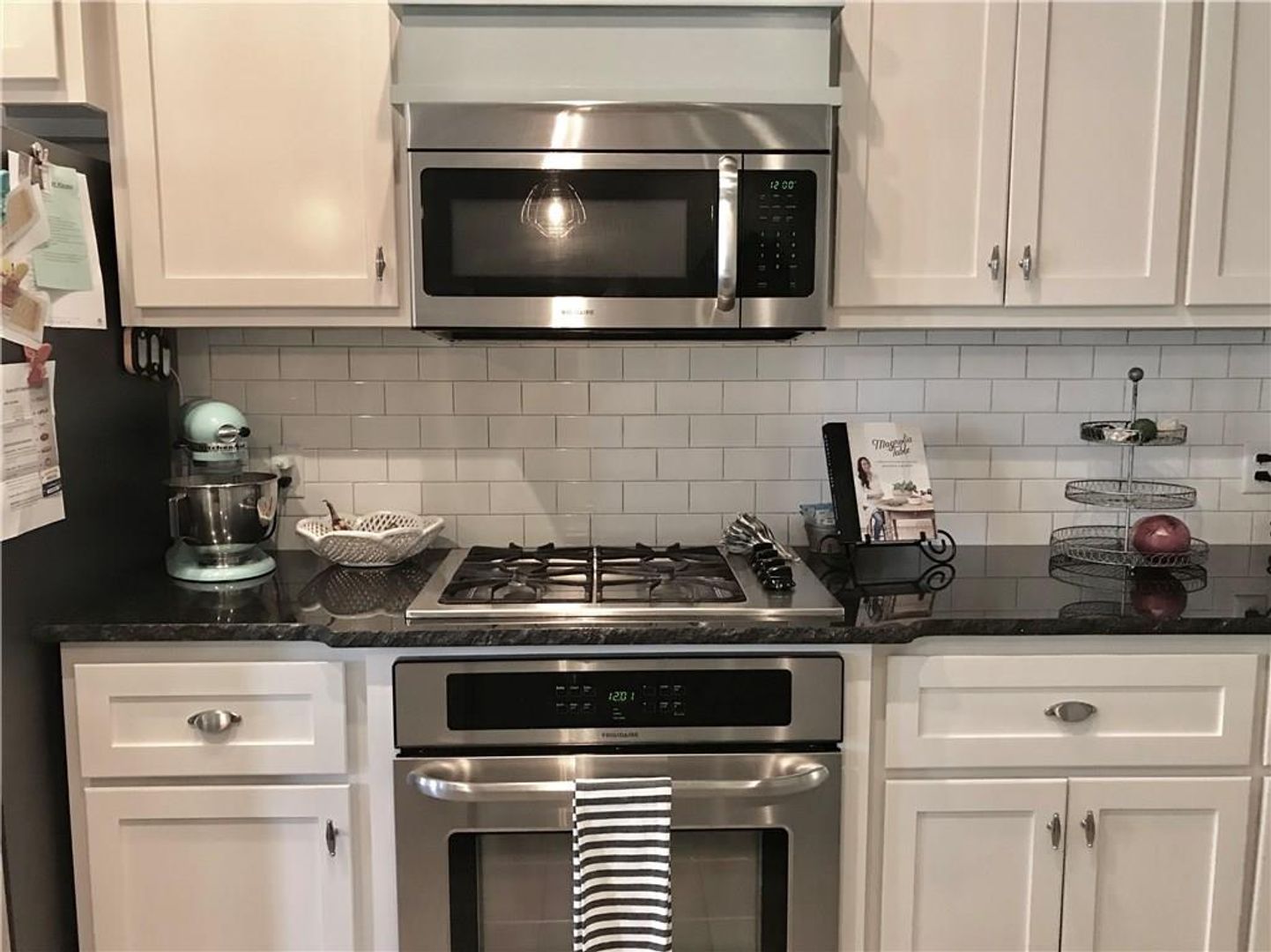 Gas cooktop, oven, dishwasher and microwave are included.
