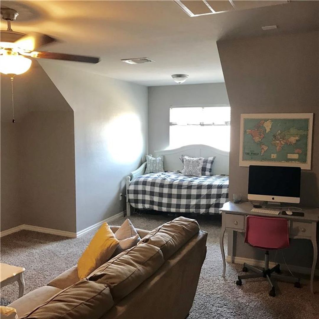 Discover this well-appointed 4-bedroom, 2.5-bath home in Edmond, OK, located within a gated golf community and served by Edmond schools. The open-concept floorplan creates a welcoming flow between living areas, and an upstairs bonus area provides flexible space for a home office, playroom, or media room. Enjoy outdoor living on the covered back patio overlooking a fenced backyard, with community ponds and a neighborhood clubhouse nearby for recreation. Practical features include a sprinkler system and a large walk-in primary closet. This property offers comfortable, convenient living with community amenities and easy access to neighborhood green spaces. Pets case by case!