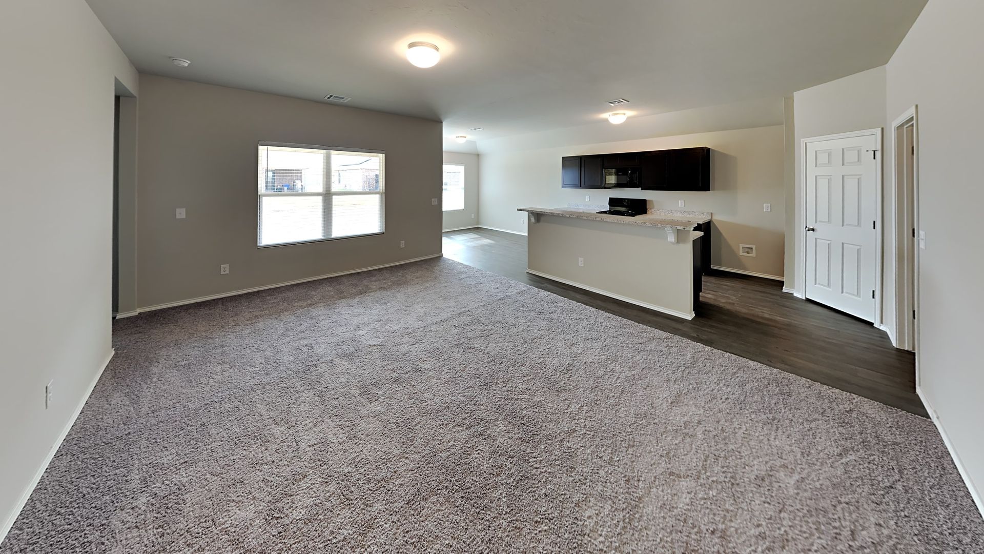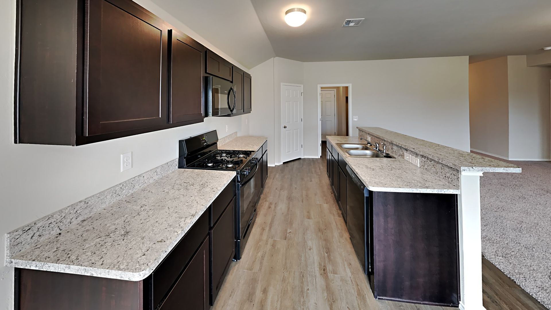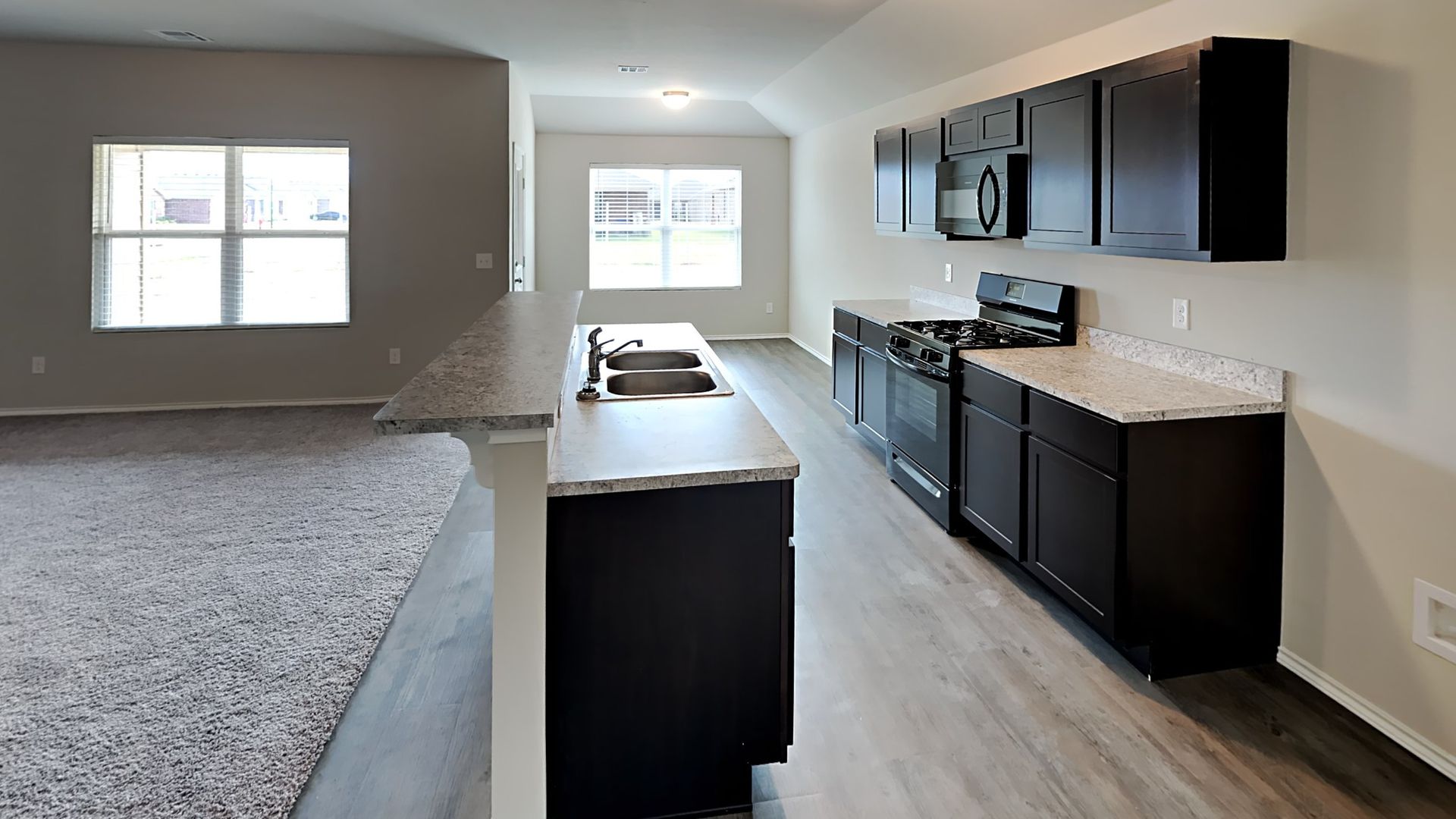 Microwave, gas range, and dishwasher are included.