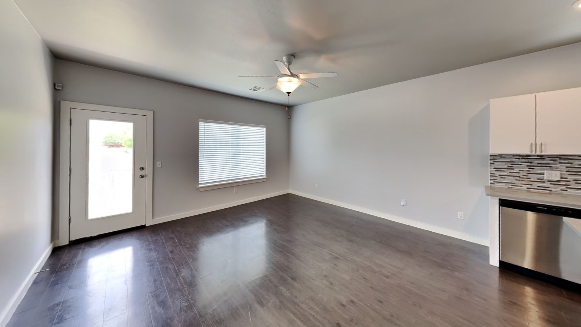 Gas stove top, oven, and dishwasher are included.