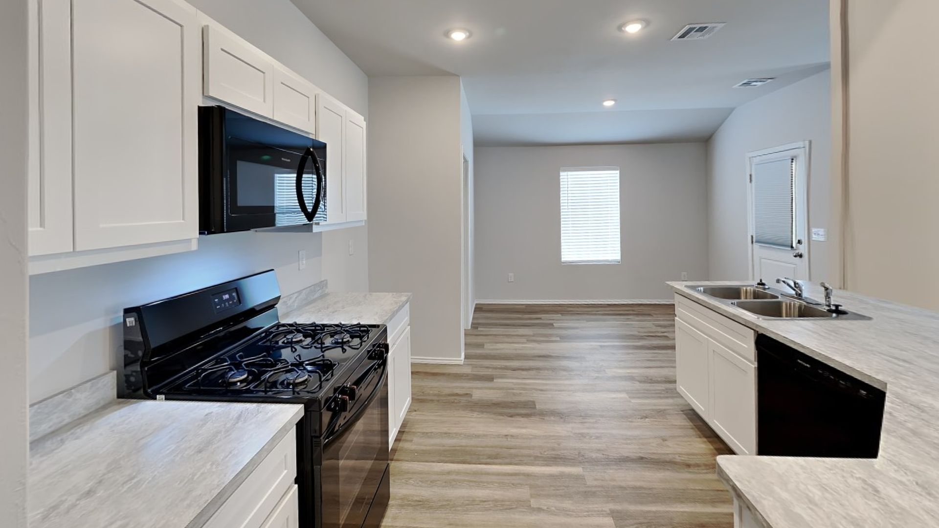 Range, dishwasher, and microwave are included.