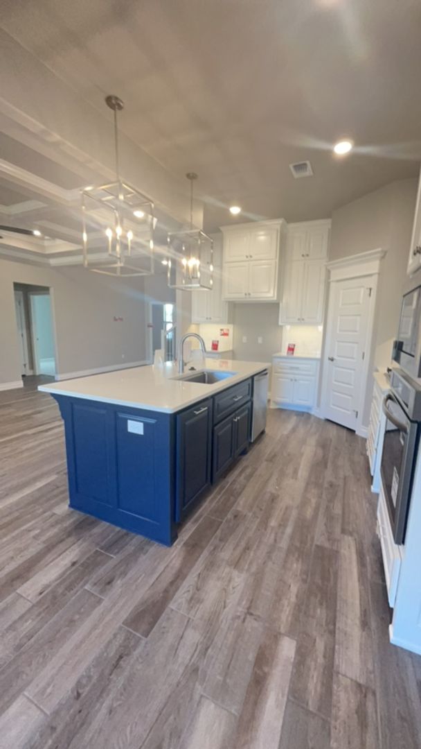 This Sage Bonus Room 2 floor plan features 2,550 Sqft of total living space, which includes 2,300 Sqft of indoor space and 250 Sqft of outdoor living. There's also a 625 Sqft, three car garage with an in-ground storm shelter installed. This amazing home offers 4 bedrooms, 3 full baths, covered patios, a utility room, and a generous bonus room located on the second story. The great room features a noteworthy coffered ceiling with a ceiling fan and crown molding, a center gas fireplace with a stacked stone surround detail, rocker switches throughout, wood-look tile, eggshell paint, Cat6 wiring, and large 7' windows. The up-scale kitchen has decorative tile backsplash, stainless steel appliances, well-crafted cabinets to the ceiling with under cabinet lighting and cabinet hardware installed throughout, stunning pendant lighting, 3 CM countertops, stainless steel appliances, a corner pantry, and a large center island equipped with a trash can pullout, a work station sink, and a dishwasher. The primary suite boasts a sloped ceiling detail with a ceiling fan, windows, Cat6 wiring, and wood-look tile flooring. The prime bath has a walk-in shower, a dual sink vanity, a free-standing tub, a private water closet, and a HUGE walk-in closet. The covered back patio offers a wood-burning fireplace, a gas line, and a TV hookup.